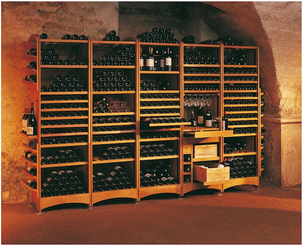 Мебель для вина Модулотек - единственная из представленных на рынке систем, в которой бутылки лежат в два ряда на выдвижных поддонах.